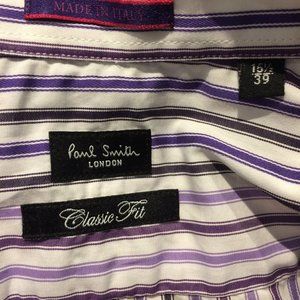 Paul Smith London Size 15.5 39 Classic Fit White/Purple Stripes Cotton Dress Shirt with French Cuffs Made in Italy