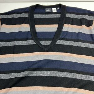 Paul Smith Men's Horizontal Striped Merino Wool V-neck Sweater