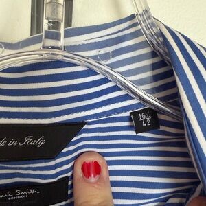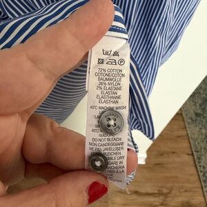Stylish navy and white stripes. Button-down design. Ideal for casual wear.
