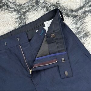There were from a sample sale at Paul Smith. Made in Italy these navy blue gents formal trouser are 100% cotton.