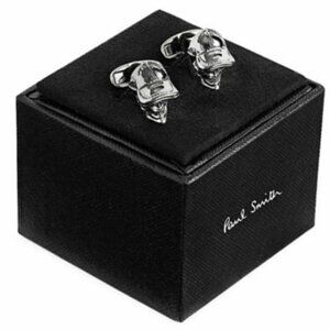 TAGS: Paul Smith, Skull Cufflinks, Mens Accessories, Silver Cufflinks, T-Bar, Engraved Logo, Gift Box, Designer Accessories, Formalwear, Wedding Accessories, Statement Cufflinks