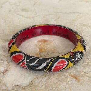 Paul Windsor Haisla First Nations “Brown Bear” Painted Wooden Bangle Bracelet