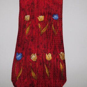 This Paulo Visari Men's Red Floral ( Blue Yellow Tulips ) 100% Silk Neck Tie Made in Italy is in Excellent clean condition. Tie is 100% Silk - Dry Clean Only.