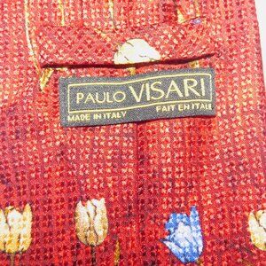 Paulo Visari Mens 100% Silk Neck Tie Made in Italy Red Floral Tulips