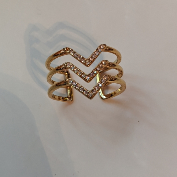 Stella & Dot Gold Pave Chevron Ring M/L size. The top left stone is missing. It has been stored in the original box.