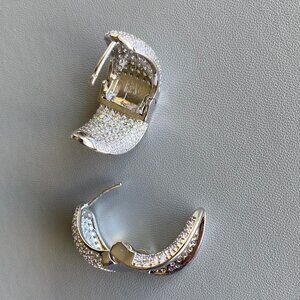 NWT Canadian Brand Fifth Avenue Collection, rhodium plated silver tone pave CZ front & inside back Huggies Style Earrings, sterling silver posts. 22 mm Long x 19mm wide. Lead, nickel, cadmium free/hypoallergenic.