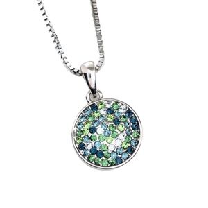 Pave Disk Pendant with Indian Sapphire and Multi Swarovski Crystals