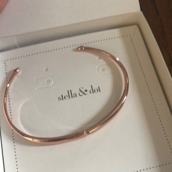 Rose gold thin cuff with small inset pave stone. Wear alone or layer with other bracelets. Never worn, in new condition.
