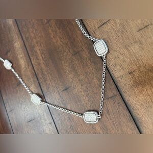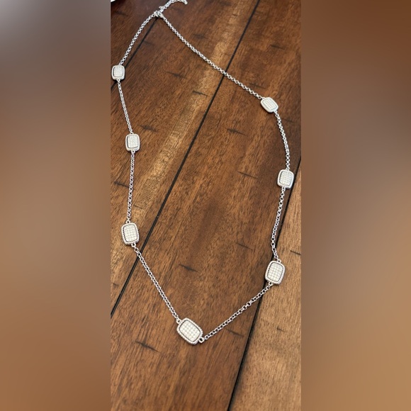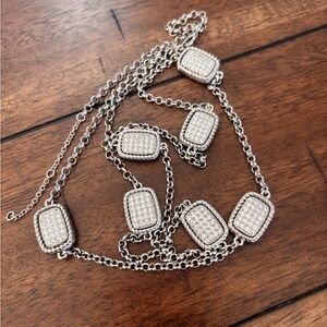 Pave Rectangular Silver Tone Chain Necklace
