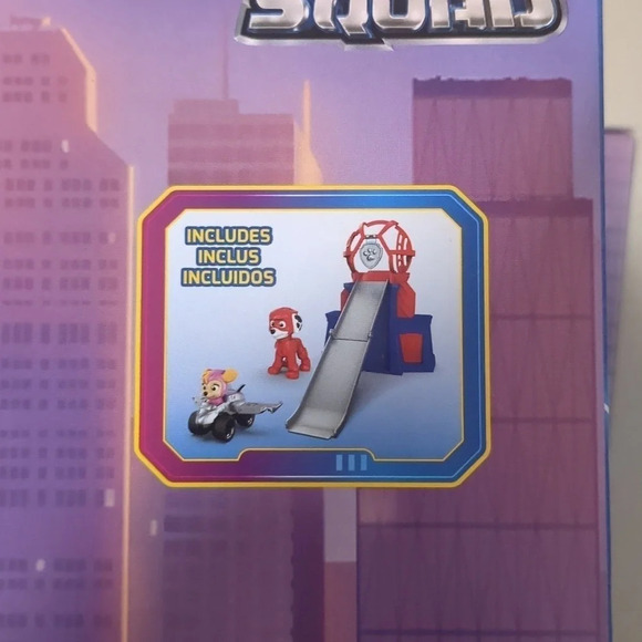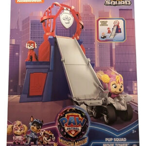 Save the day with your favorite rescuer pals with this Paw Patrol Pup Squad Movie Tower Play Set. This set includes the tall tower with a slide for your Paw Patrol pup to ride down on in their super vehicle. Use the provided stickers to decorate the tower and be ready to roll out in style!