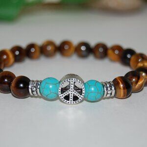 Peace Bracelet,Tiger Eye Bracelet,Peace Tiger Eye Stone Bracelet