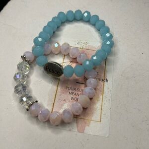 Blue, pink & clear faceted crystals symbolizing peace, harmony & healing. “Peace” charm for inner calm.