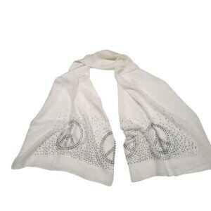 Peace Sign Motif White Scarf Metal Studded Scarf Long Wide Thin Rectangular- NEW