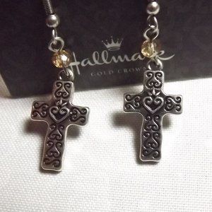 Peaceful Cross Hallmark Gold Crown Collection NOS Pierced Earrings, FAITH …