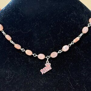 Peach Moonstone Adjustable Choker, Cat Person Paw Print Pendant+Genuine Gemstone