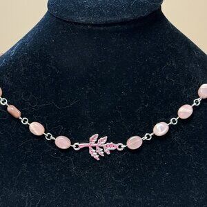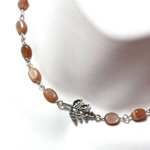 Peach Moonstone Adjustable Choker, Leaf Branch Pendant + Genuine Gemstone
