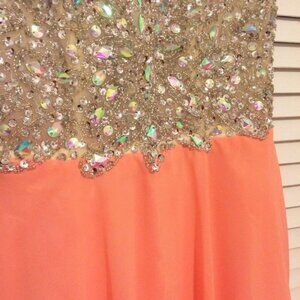 Peach Orange Gemstone Sequin Maxi Prom or Evening Dress