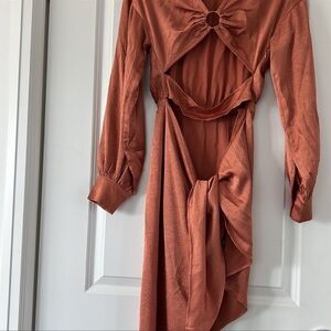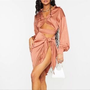 Peach Satin Wrap Dress – PrettyLittleThing Date Night