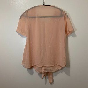 Peach chiffon pearl shoulder front-tie top