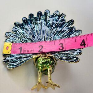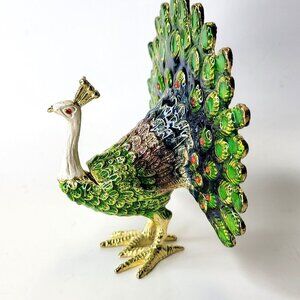 Peacock Decorative Box Trinket Jewelry Box Hinged Jeweled Gold Enamel Painted