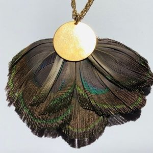 Strut. Your. Stuff! Wear this statement piece on your next Zoom call, and watch the compliments fly! A splay of feathers to dress up the most staid work wear, a glint of gold to catch the eye.
