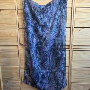 Vibrant scarf with a blue and pink feather pattern.