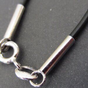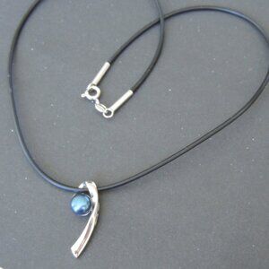 A lovely genuine peacock pearl and sterling silver pendant on a black vegan leather cord.