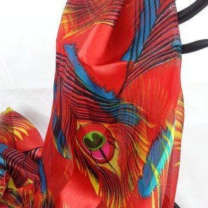 "Peacock" Red polyester satin scarf $6.99 Shipping 13X58" NWOT