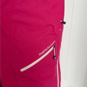 Stylish ski pants by Peak Performance . Bright pink with white accents. Perfect for winter sports. Light sign of wear on the bottom of the pants please see pics