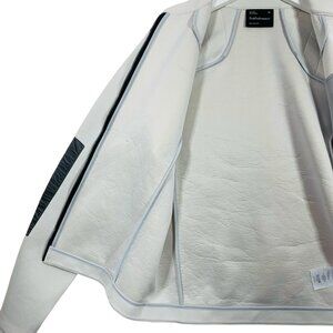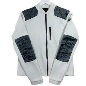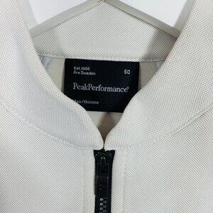 Stylish zip-up sweater by Peak Performance. Features a sleek design with gray accents on a white base. Perfect for casual wear.
