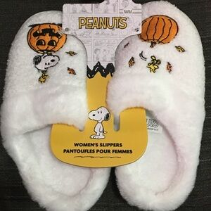 Peanuts Cozy White Slippers with Pumpkin and Black Details
