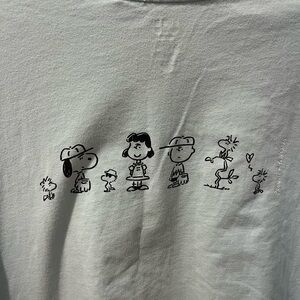 Light blue short-sleeve graphic t-shirt from the Peanuts x Yu Nagaba collaboration, featuring minimal “Peanuts Gang” text on the chest and full character illustration on the back. Relaxed fit, soft cotton fabric. Size XL.