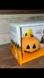 Snoopy dressed in a red cape. Accompanied by a pumpkin with a yellow star. Hand-painted craftsmanship.
