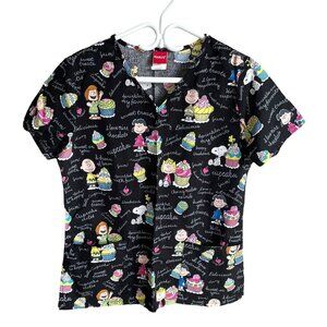 Peanuts Scrubs Top V-Neck Short Sleeve 100% Cotton Women's Small