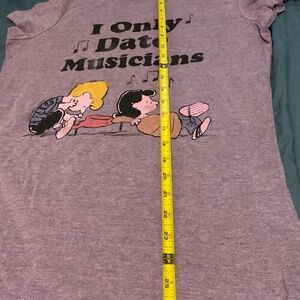 CHARLIE BROWN AND THE GANG VINTAGE T SHIRT MADE BY ‘’’’ TAKE COVER ‘’’ . LOGO ‘’’ I ONLY DATE MUSICIANS ‘’ VINTAGE SIZE LARGE UNISEX . SIZE LARGE .. EXCELLANT CONDITION NEVER WORN PACKED AWAY .. THIS IS A TRUE PEANUT GALLERY MEMORABELLIA PEICE … MEASUREMENTS SHOWN IN PIC VIA TAPE MEASUREMENT.. DONT MISS THIS EXCELLANT VINTAGE PEANUTS PEICE OF MEMORABELLIA ..