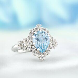 Pear Aquamarine Blue Gemstone Ring - 925 Sterling Silver Vintage Charmed Aroma