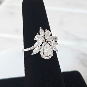 Pear Cluster Engagement Cocktail Style ring, 925 Sterling Silver Charmed Aroma