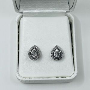 Pear Cut Natural Diamond Stud Earrings Sterling Silver