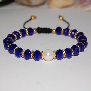 Pearl Bracelet,Fresh Water Pearl,Crystal Glass Beads,Drawstring,Blue Bracelet