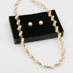 Pearl & Gold Necklace & Earring Set. Brand New -Never Worn. Clean & Sanitized.