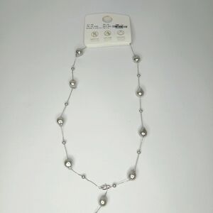 Pearl Necklace Silver Coating Mini Faux Pearls Stainless Steel.