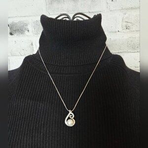 Pearl & Rhinestone Pendant Silver Tone Necklace