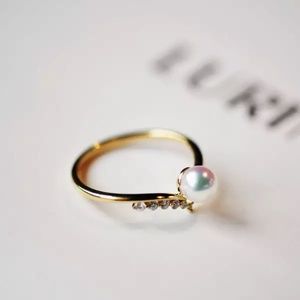 Pearl Ring, Chevron Ring, CZ Stacking Ring