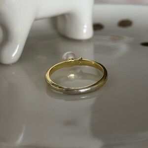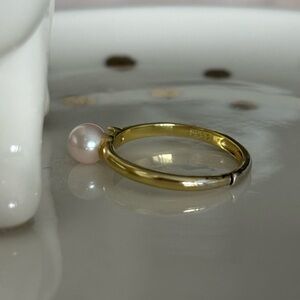 This elegant gold ring features a beautiful 4-5mm sea water pearl, perfect for adding a touch of sophistication to any outfit.