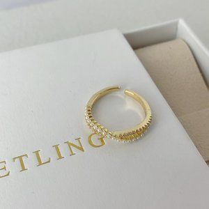 Pearl and CZ Cross Open Ring