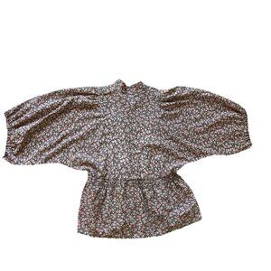Vintage home made blouse & skirt set is made from lightweight cotton fabric with a pink floral print over a brown background. Blouse has button front, high neckline with short foldover collar, 3/4-length sleeves, smocked peplum waist with bow at front of waist. Maxi-length skirt has back zip closure and pockets at sides of hips. Top fits like a women's small/medium, skirt fits waist size 28". See below for garment measurements. Pre-owned condition: smocking at blouse waist has some broken threads/elastic, elastic around sleeve cuff is no longer stretchy. The pictures show the actual item that you will receive.