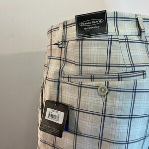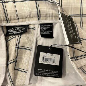 Pebble Beach Performance Men's Plaid Golf Shorts - Size 34 - NWT. 88% polyester, 12% spandex. Two front pockets, two back pockets. Zip fly.