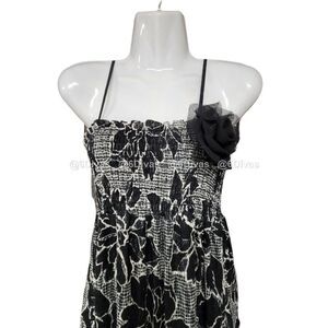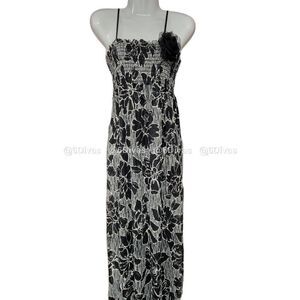 Smocked Spaghetti Strap Maxi Summer Black White Floral Long Dress with adjustable Straps