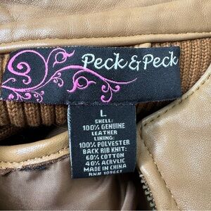 Peck and Peck Tan Brown Genuine Leather Sweater Back Vest Full Zip Closure Large