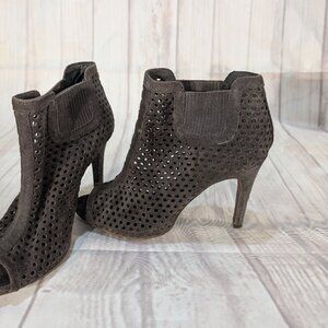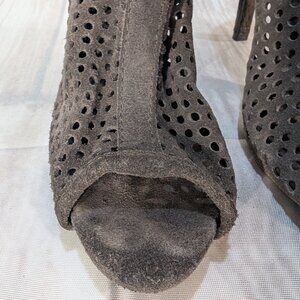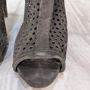 Pedro Garcia Perforated Suede Peep Toe Ankle Boots Size 37.5